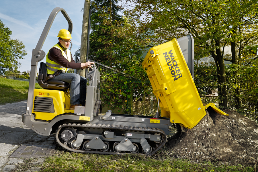 Il DT15 è il trasportatore ideale in cantiere per numerose tipologie di lavori. L’ampia gamma di cassoni, insieme alla trazione idrostatica comoda e intuitiva e l’elevato carico utile, lo rendono un perfetto tuttofare. Il cofano motore monoblocco e la disposizione ottimale dei punti di assistenza facilitano notevolmente anche la manutenzione quotidiana e fanno risparmiare tempo e fatica. Il baricentro basso lo rende un partner affidabile nel trasporto di materiale anche in presenza di carichi pesanti.