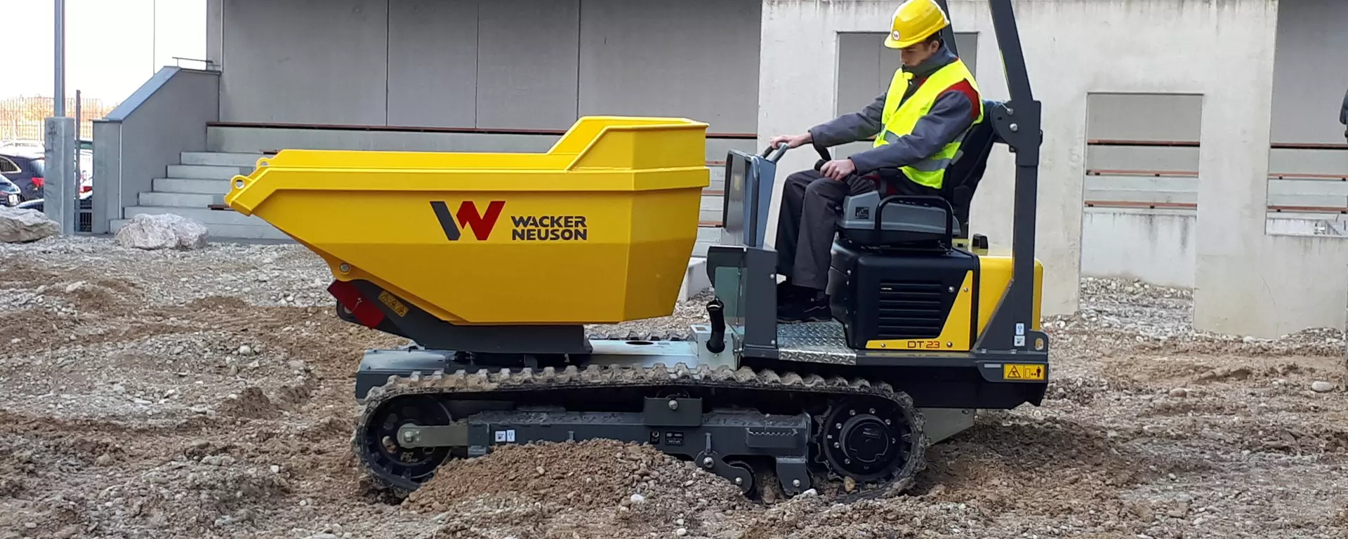 Potente in azione, delicato sul sottofondo e senza limitazioni nel terreno: Il DT23 è potente, padroneggia qualsiasi situazione senza sforzo, garantendo agilità e potenza. L’idraulica aggiuntiva opzionale per la trazione a due stadi e il collegamento di dispositivi esterni, quali un martello o una betoniera, ne fanno un talento tuttofare in ogni cantiere. Grazie alla trazione idrostatica sensibile, anche gli operatori inesperti possono prendere rapidamente confidenza con il dumper. Grazie ai componenti perfettamente coordinati e all’elevata forza di trazione il DT23 è l’ideale nonostante la sua tecnologia semplice per una facile manutenzione.