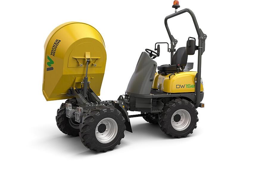 Il DW15e è il primo dumper gommato completamente elettrico franco fabbrica e offre quindi molte applicazioni e usi aggiuntivi. Il display ben visibile con indicatore del livello di carica e i due motori separati per trazione e idraulica garantiscono la massima efficienza e facilità d’uso. Caricato durante la notte, può essere utilizzato immediatamente ed è subito pienamente operativo il giorno lavorativo successivo senza limitazioni di potenza rispetto ai dumper gommati convenzionali. Il lavoro a zero emissioni al 100% protegge simultaneamente l’ambiente e l’operatore. Gli intervalli di manutenzione elevati e la batteria esente da manutenzione completano il perfetto rapporto qualità-prezzo.