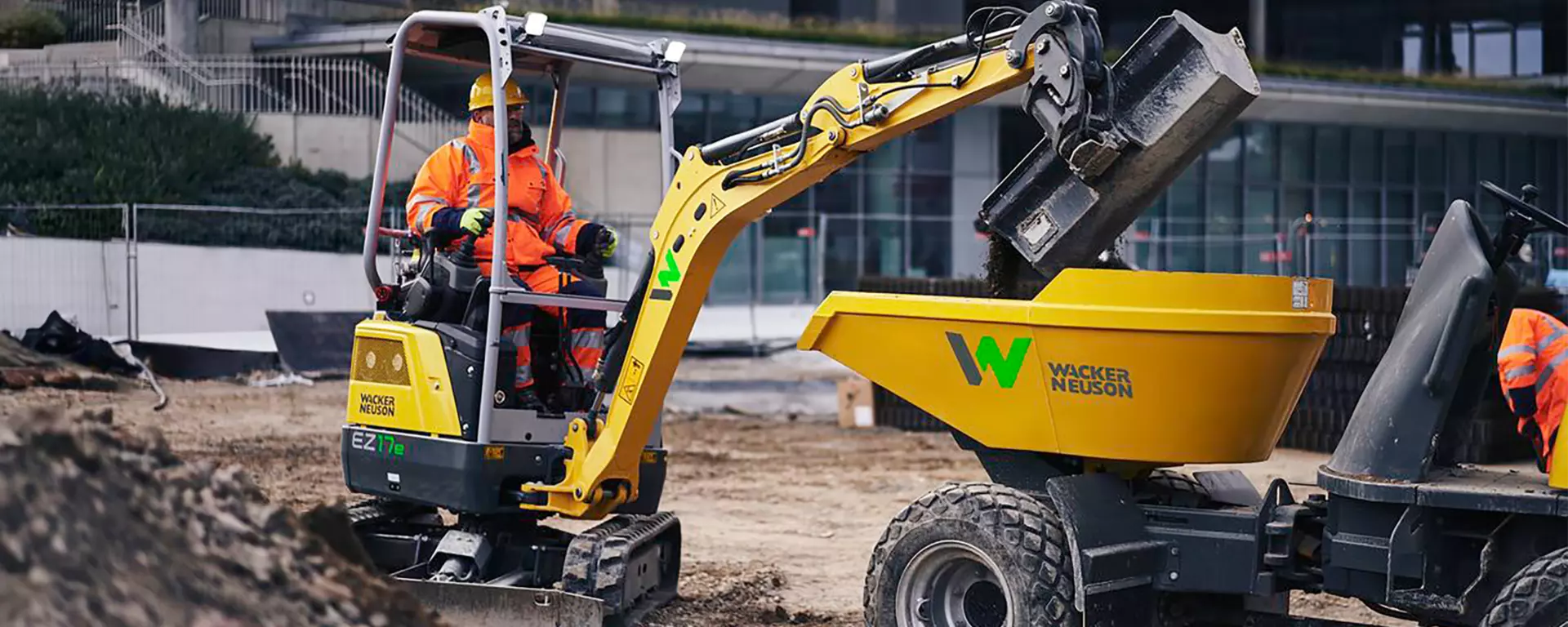 L’EZ17e è il primo miniescavatore girosagoma completamente elettrico. L’assenza di emissioni lo rende ideale per l’impiego in ambienti interni e in aree soggette a limitazioni sui gas di scarico e il rumore.